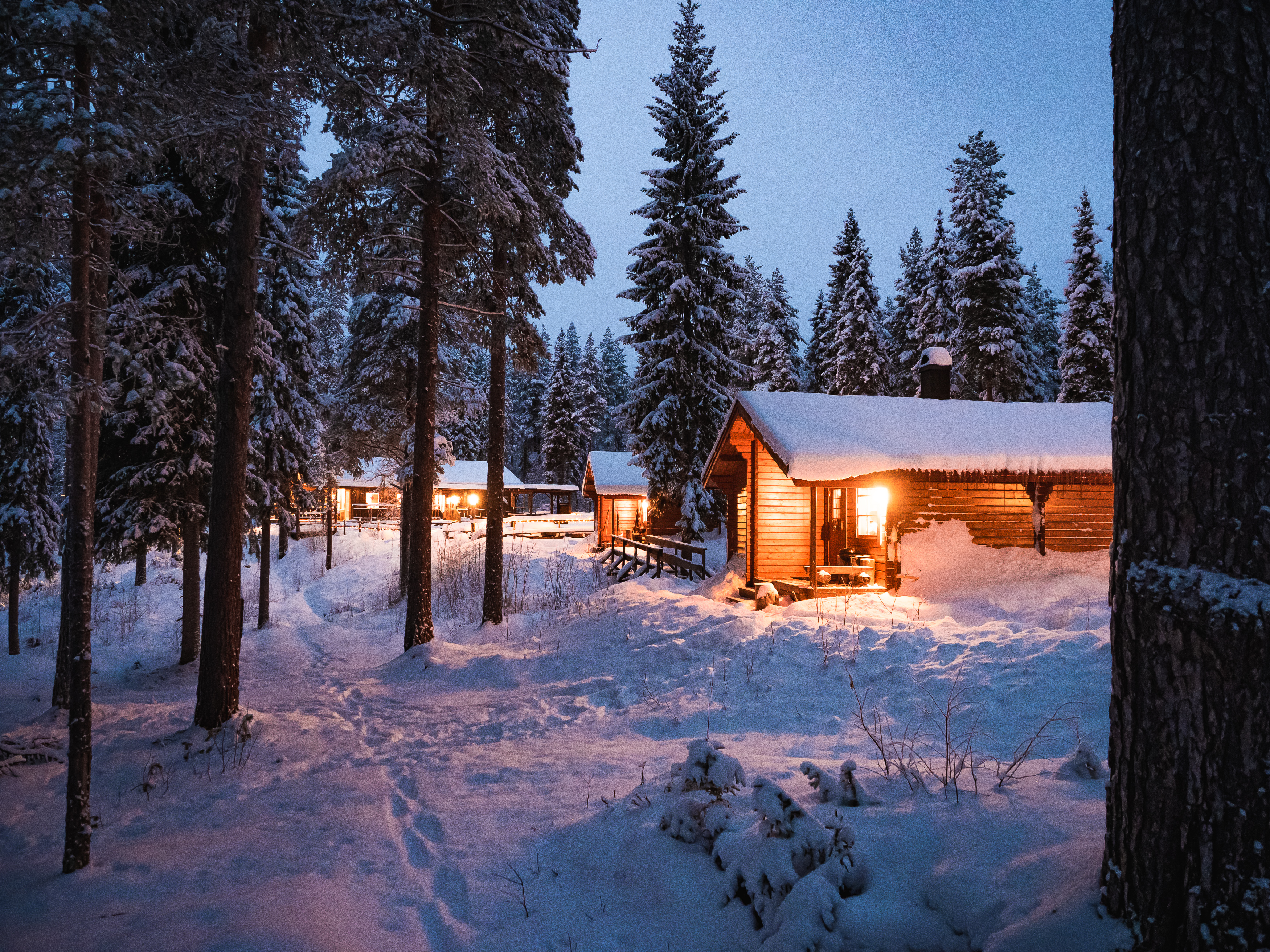 På vildmarkscampen finns tre stycken 5-bäddsstugor, bastu, grillplatser, utespa och Storstugan.
